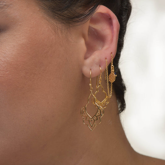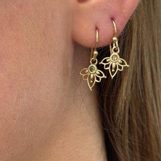 עגילים נתלים לוטוס ואבני חן מוזהבים