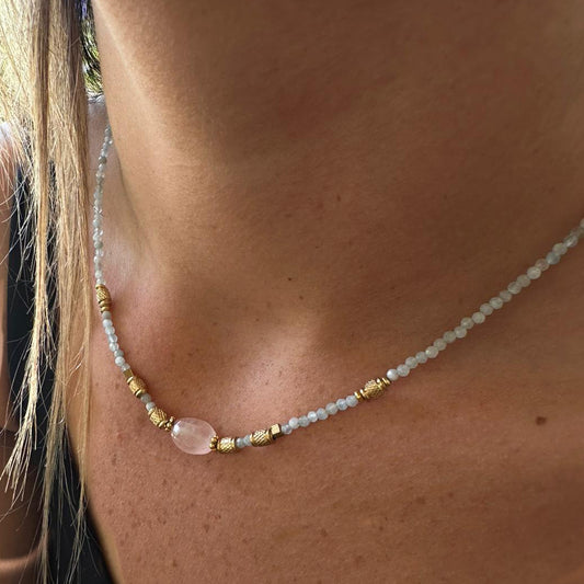 שרשראות מהרני אמזונייט ורוז קוורץ