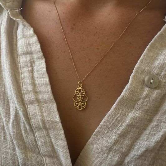 שרשרת חמסה פיליגרן מוזהבת