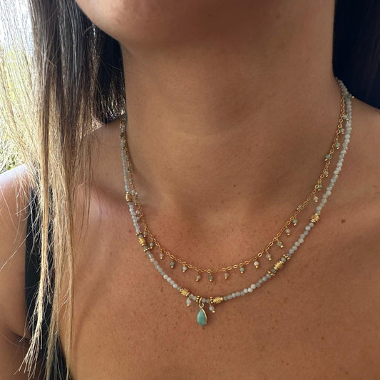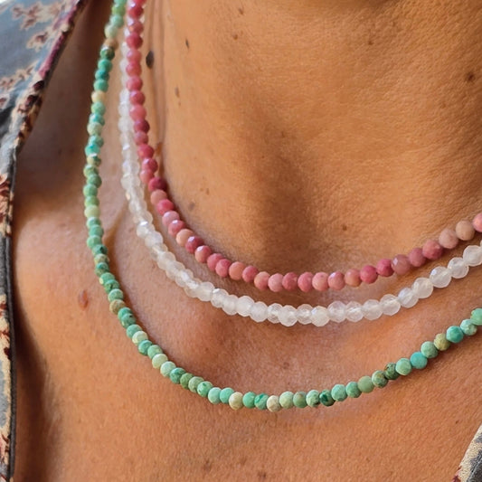 שרשראות מהרני אמזונייט ורוז קוורץ