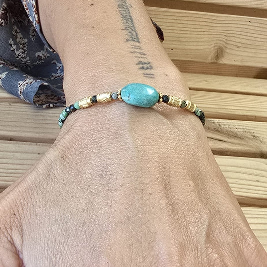 סט צמידים עדין ספינל שחור, פיריט והמטייט