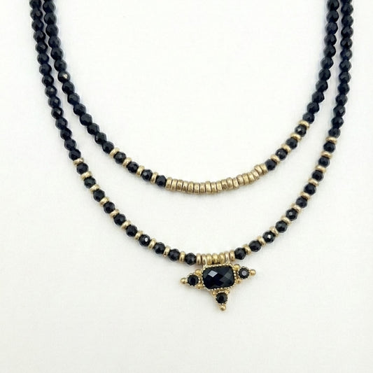 כוכב החוסן - שרשרת חרוזי ספינל שחור עם תליון כוכב