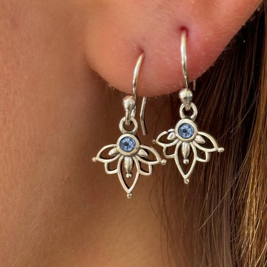 עגילים נתלים לוטוס ואבני חן כסף 925