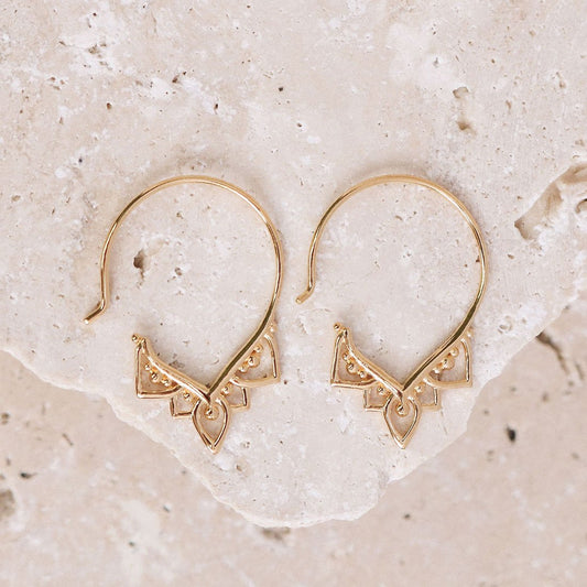 עגילים נתלים לוטוס ואבני חן מוזהבים