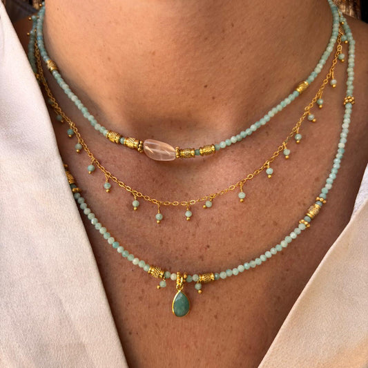 שרשראות מהרני אמזונייט ורוז קוורץ