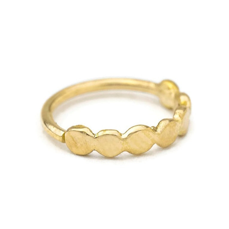 שורת עיטורי העיגולים הקטנים לאורך החישוק מחזירים אור זוהר ומאירים את פנייך.