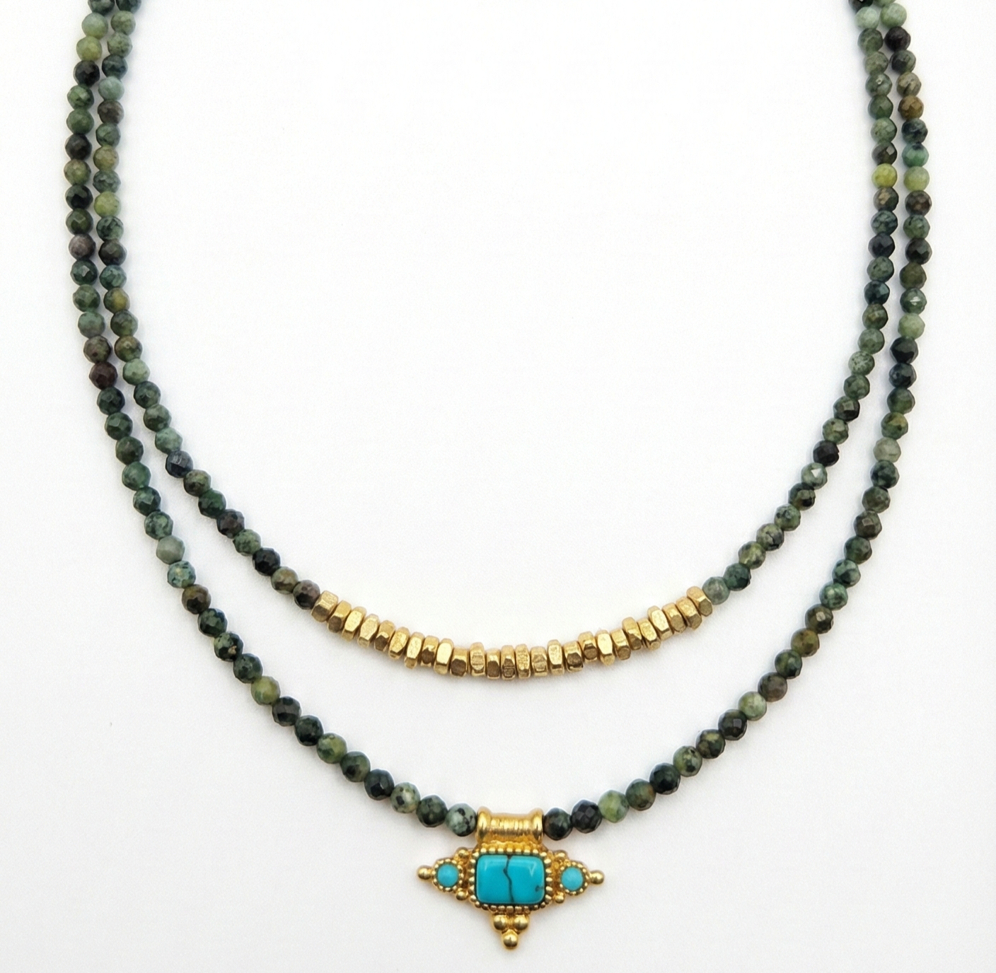 והשרשרת עם חרוזי הבראס – שמדברת על הכוח השקט שבפשטות.