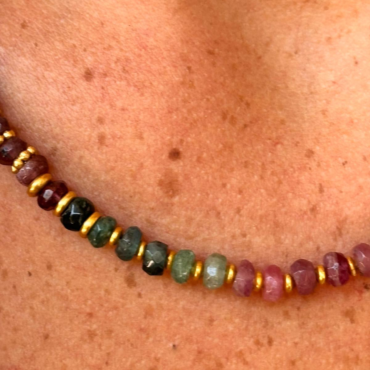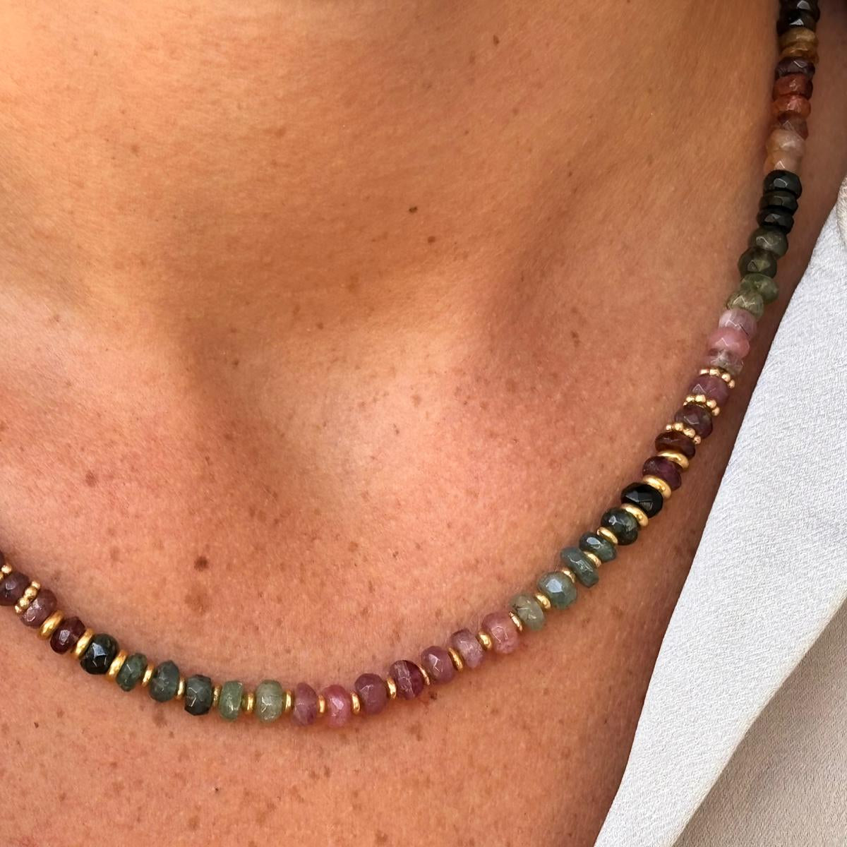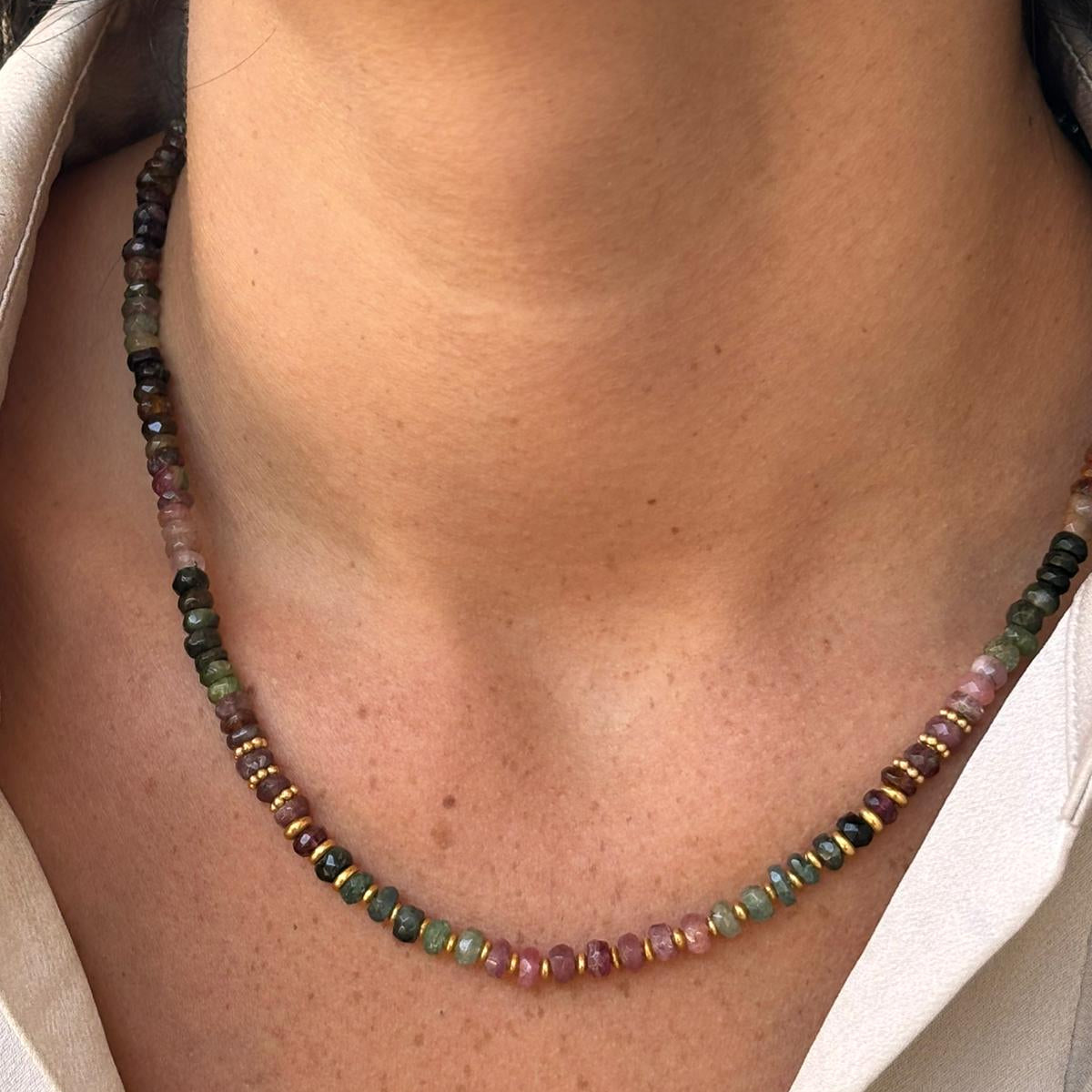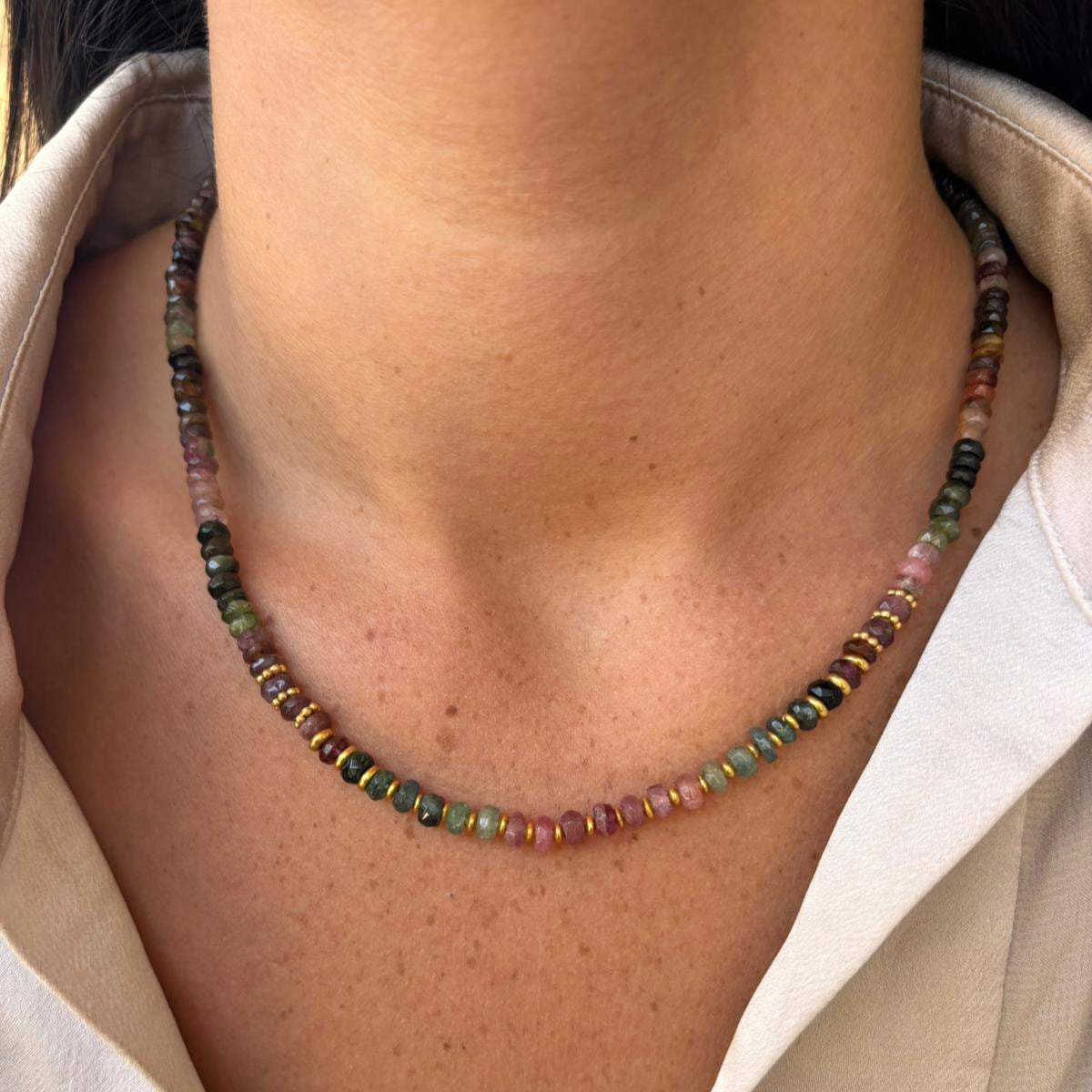 שרשרת שמשדרת אהבה לחיים, מלאה בצבעוניות אופטימית שמרוממת, מחזקת ומעצימה. הצבעים העמוקים של הטורמלין אופפים אותך באוירה של יוקרה, כמו יין טוב ואוויר הרים.