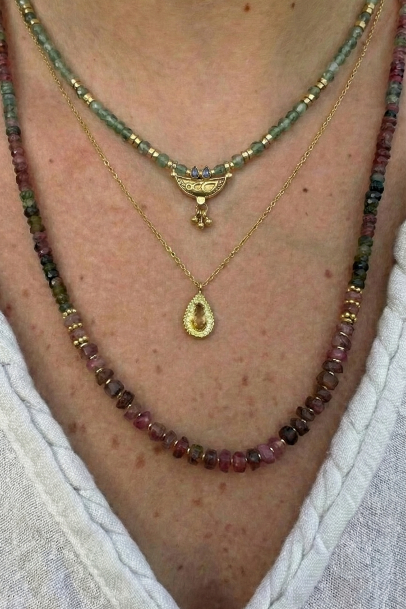 הערה חשובה: הטורמלין הוא אבן טבעית, ולכן כל חרוז ייחודי בגוונים ובמרקם שלו. זה בדיוק מה שהופך כל שרשרת למיוחדת - כמוך.