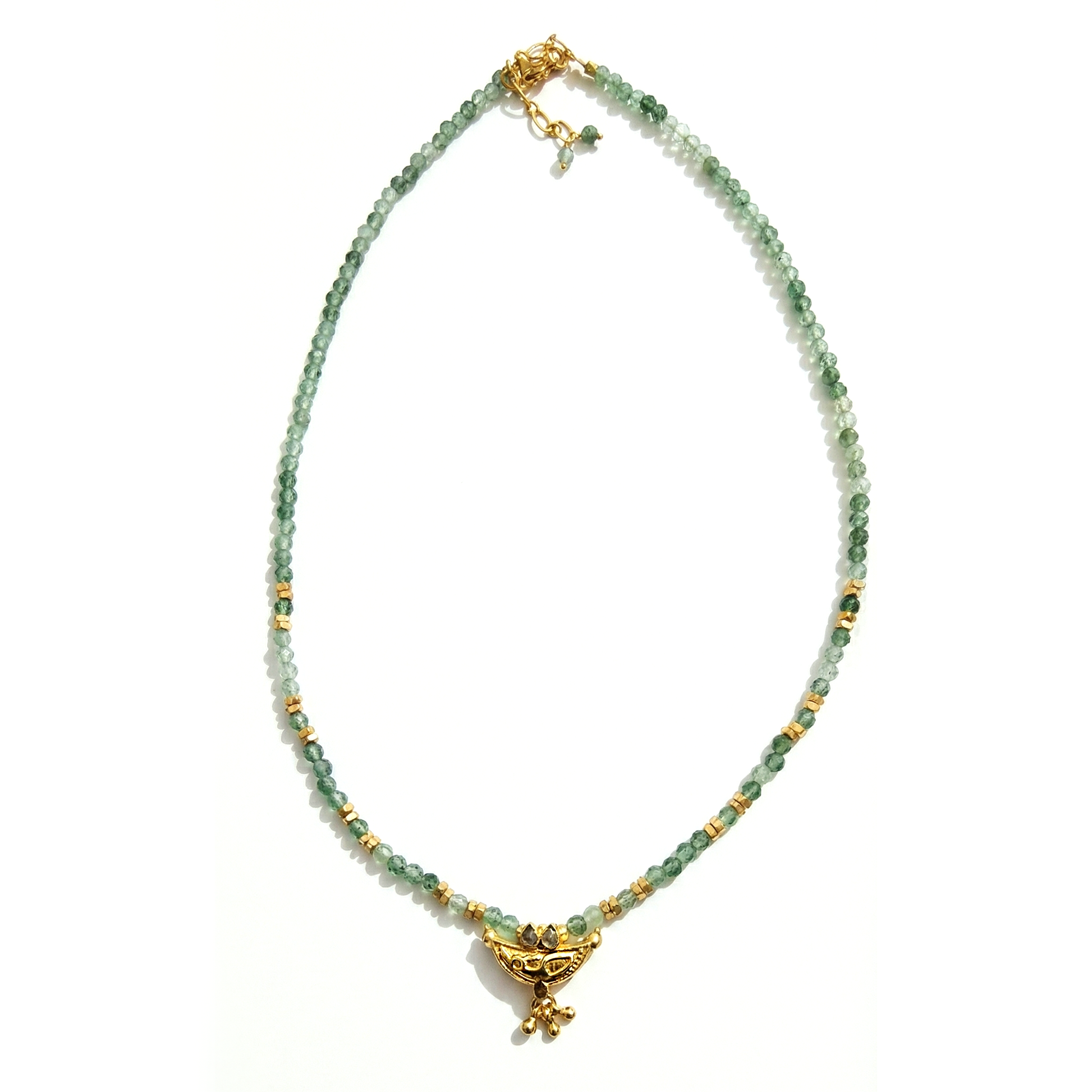 חרוזי הג'ייד ההודי - כל חרוז הוא יצירת אמנות של הטבע. הגוונים הירוקים שמתמזגים זה בזה מזכירים את הרגעים שבהם לב האדמה פוגש את השמיים. ג'ייד הודי נחשב לאבן של שפע, איזון ויציבות רגשית.