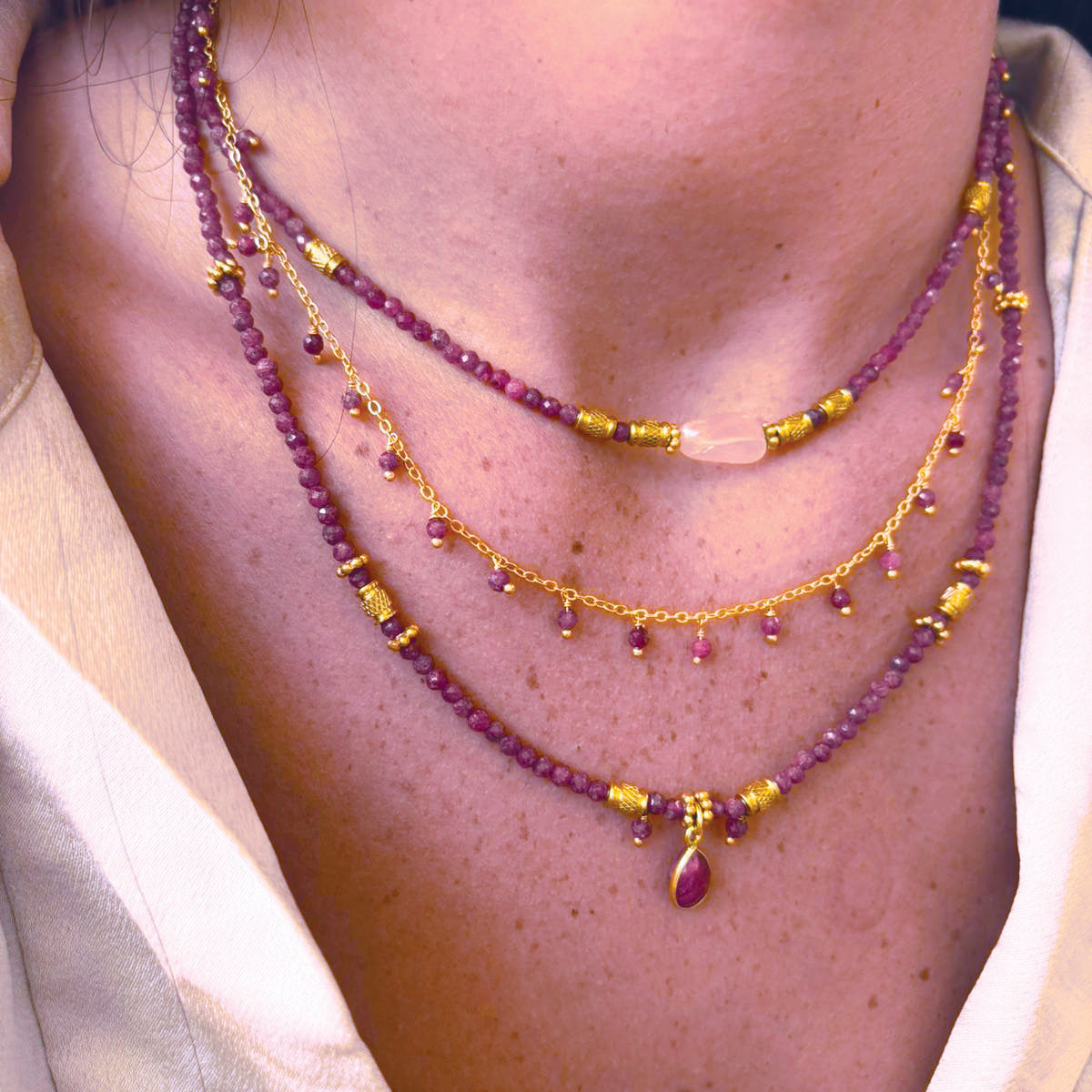 שרשרת המהרני, מעוטרת באבנים עמוקות ועשירות.